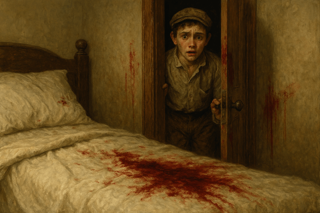 Was der Bote im Schlafzimmer vorfand, ließ sein eigenes Blut in den Adern gefrieren. Nur kurz hatte er durch die Tür gelugt, sie aber sofort wieder zugezogen. Was er gesehen hatte, reichte, um ihn für den Rest seines Lebens schlecht schlafen zu lassen.