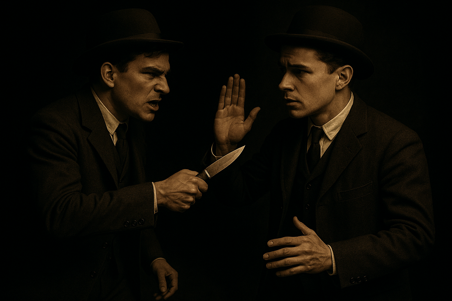 Nach Einbruch der Dunkelheit war die Angelegenheit schon fast vergessen. Heinrich Wenning wollte sich gerade auf den Heimweg machen, als er Gerhard und Heinrich Pottebohm in die Quere kam. Die beiden Brüder hatten ihn abgepasst, weil sie mit ihm noch eine offene Rechnung zu begleichen hatten. Die Pottebohms stellten ihn, warfen ihn zu Boden und prügelten auf ihn ein. Als Josef Wenning bemerkte, was da vor sich ging, schritt er ein. Es gelang ihm, die Prügelnden voneinander zu trennen und verpasste Gerhard Pottebohm schließlich ein paar deftige Ohrfeigen. Das war zuviel. Gerhard Pottebohm zog sein Messer aus der Tasche und drohte den Wennings damit.