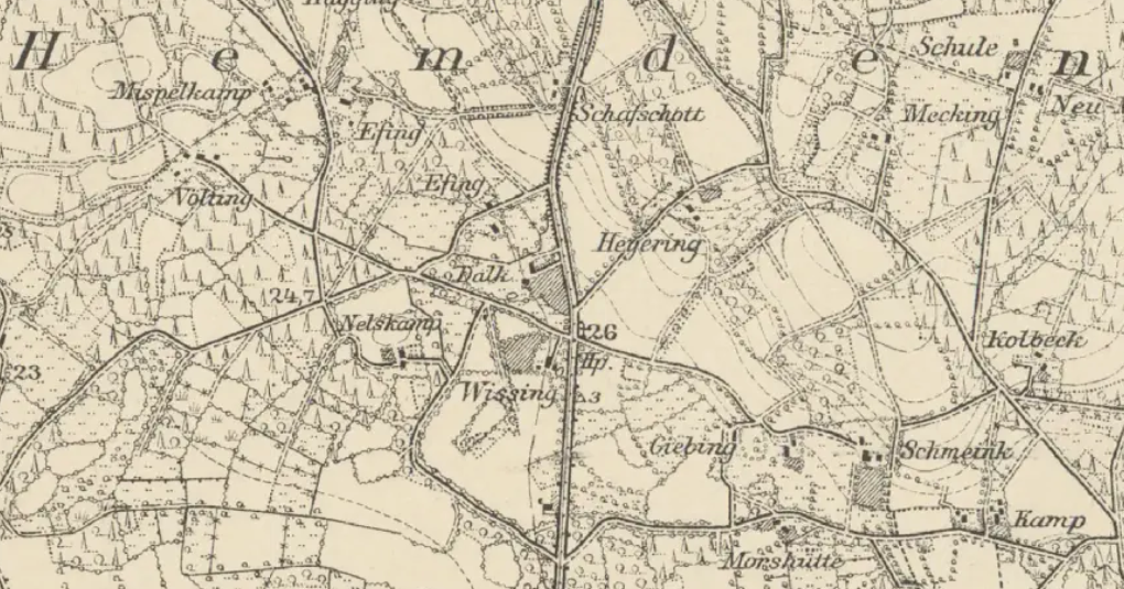 Im Wonnemonat Mai des folgenden Jahres war die Zeit gekommen. Die Felder waren bestellt, das Vieh auf der Weide, die Scheune war leer, es konnte endlich gefeiert werden. Am 04.05.1898 hatte sich die ganze Festgesellschaft auf dem Hof Wissing versammelt, um dort die Hochzeit nachzuholen. Die Brautleute hatten sich nicht lumpen lassen und es waren nicht nur die nächsten Verwandten und Nachbarn anwesend, sondern auch zahlreiche Gäste aus der erweiterten Hemdener Nachbarschaft. Die Familie Pottebohm vom Nachbarshof Völting war selbstverständlich dabei. Dazu gehörten unter anderem die Brüder Heinrich, Anton und Gerhard.
